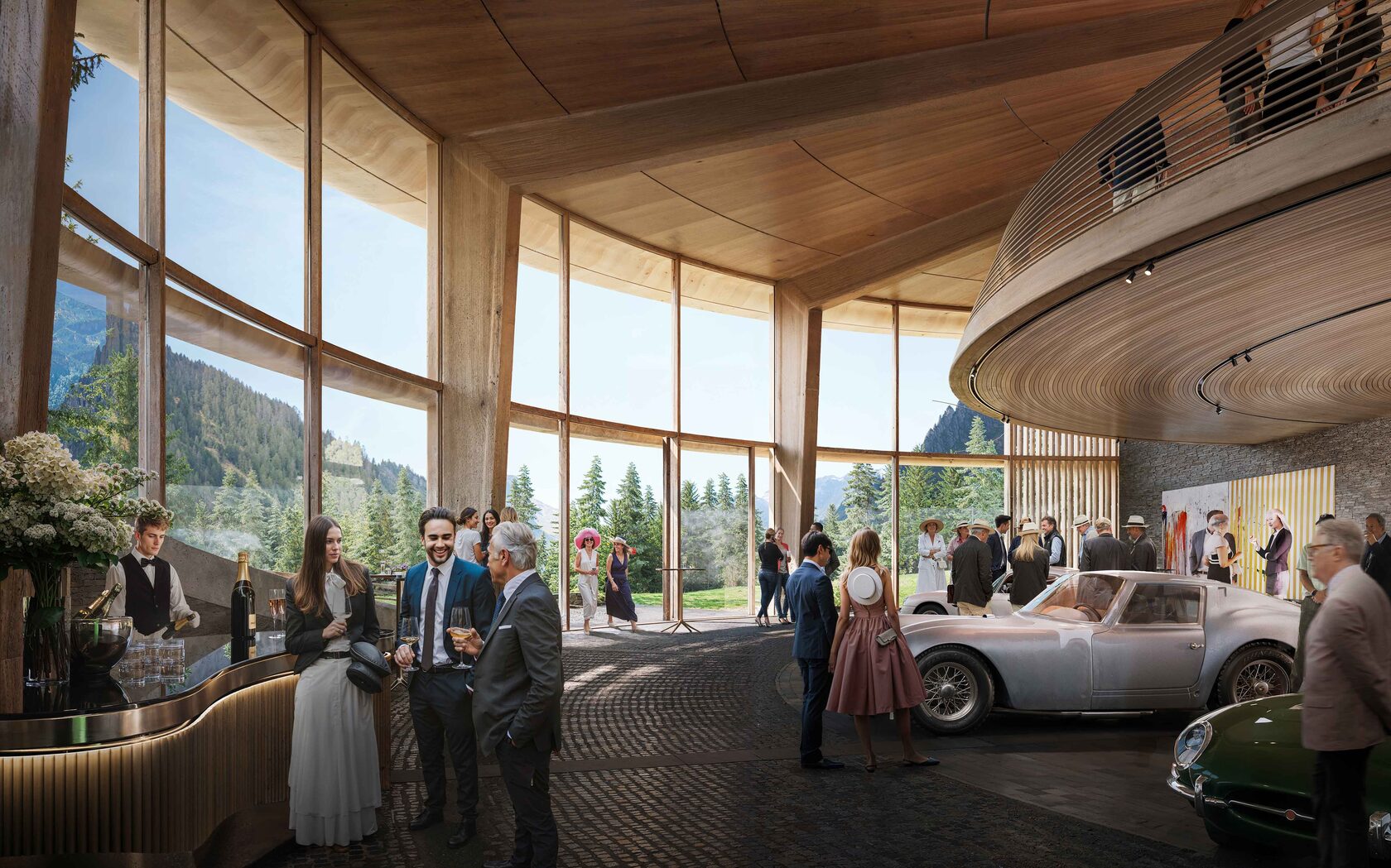 The Foster + Partners initiative comes as a pioneering attempt to build up-to-date display and storage facilities in the area. As the studio architect Kirsten Scott says, Gstaad House is designed to be seen from the road thanks to its larch facade, which produces panoramic views and imbues the spaces with natural light. Besides, the contour of the building replicates the landscape profile; Swiss mountains and winding roads are echoed through the flat roof and the sloping facade of the House.
