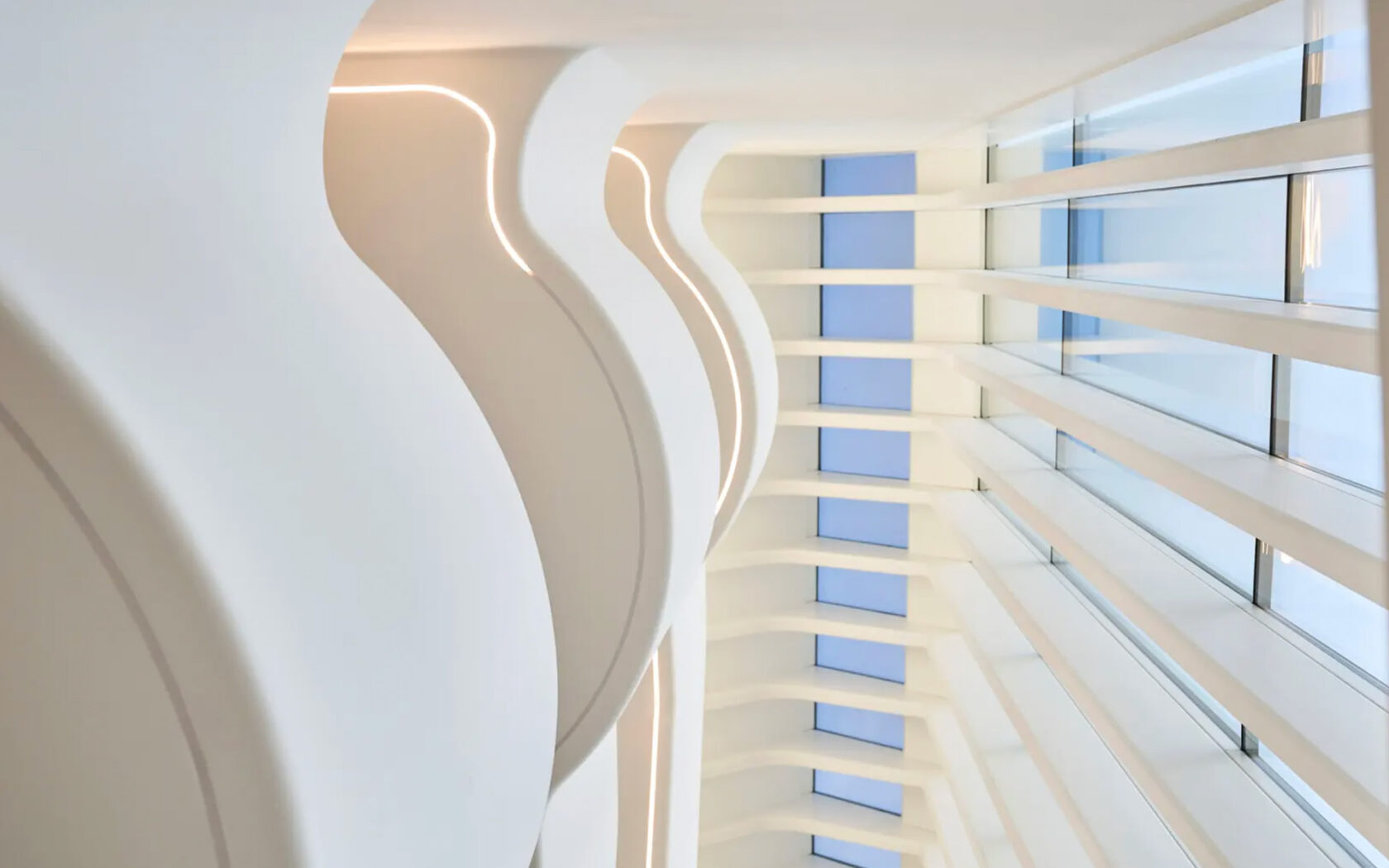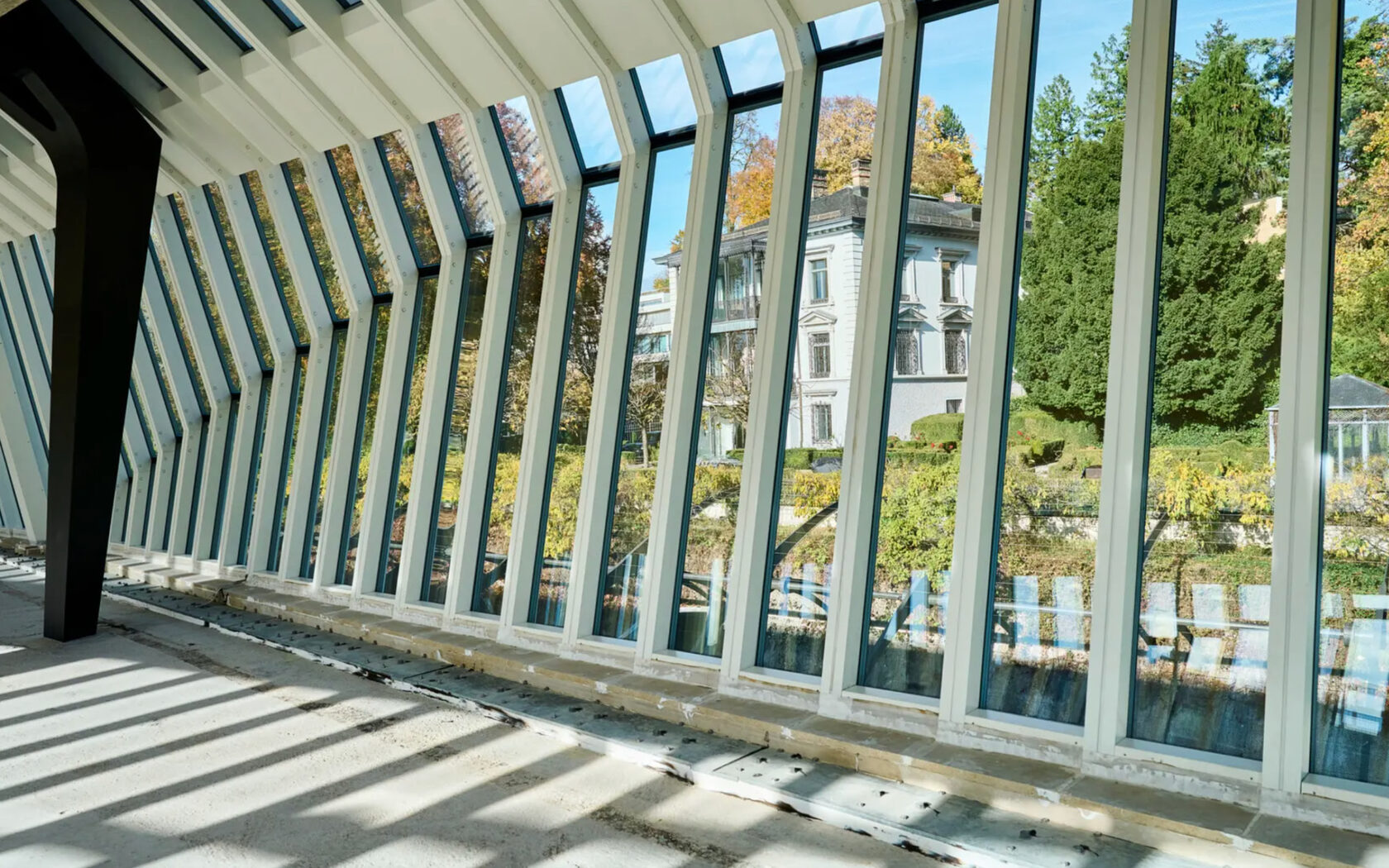 This exceptional work of architecture offers breathtaking panoramic views through its glazed facades, providing unobstructed sightlines to Zurich’s historic landmarks like Grossmünster and St. Peter’s Church. Calatrava emphasized the building’s sculptural qualities, stating that architecture thrives on the interplay of light, a principle evident in the building’s wave-like windows and curved steel supports.